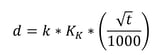 The term d is the depth of carbonation in mm, defined as: